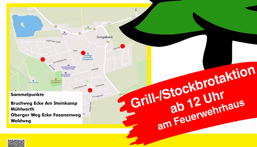 Wer etwas Hunger mitbringt oder die Kameraden treffen möchte, ist ab 12:00 Uhr herzlich zum Feuerwehrhaus, Schwalbenweg 4 eingeladen. Dort bietet die Ortswehr Leckeres vom Grill sowie eine Stockbrotaktion für die Kinder an.